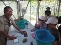10月21日(火)に小蒲生田にある「つばめのうた」で藍染め体験をしました。子どたちは、染色液から引き揚げたハンカチが空気と触れて、徐々に青くなっていく様子をじっくり観察していました。また、染色液が「蓼藍」という植物からできていて、化学薬品などを使っていないことを教わり、「それなのにこんなにきれいに染まるんだ」と驚いていました。初めての藍染め体験を楽しみました。