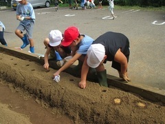 10月20日(月)にさつまいも掘りをしました。今年の夏は雨が降らなかったのですが、掘ってみるとサイズは小さいですが、たくさんのさつまいもが収穫できました。子どもたちは、協力してさつまいもを掘りました。取れたさつまいもは、子どもたちと調理をし、おいしく食べようと考えています。